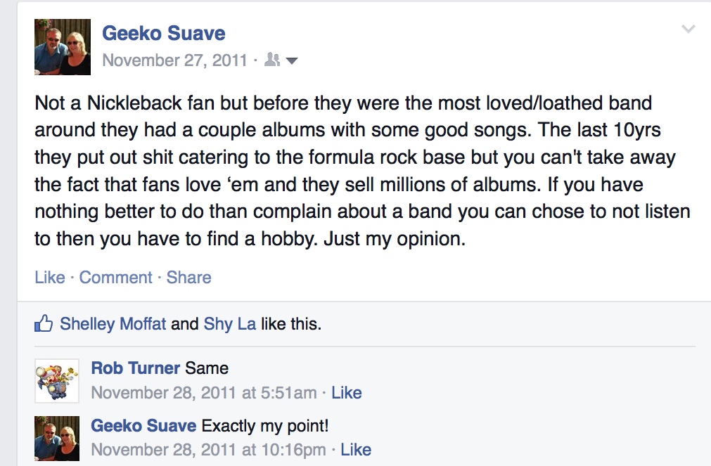 And if you haven’t checked out the early Nickleback albums, get on it because there are some good songs on them.